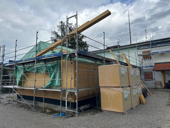Während der Neubau in Holzbauweise für die Mensa steht, wird im UG neue Haustechnik installiert!