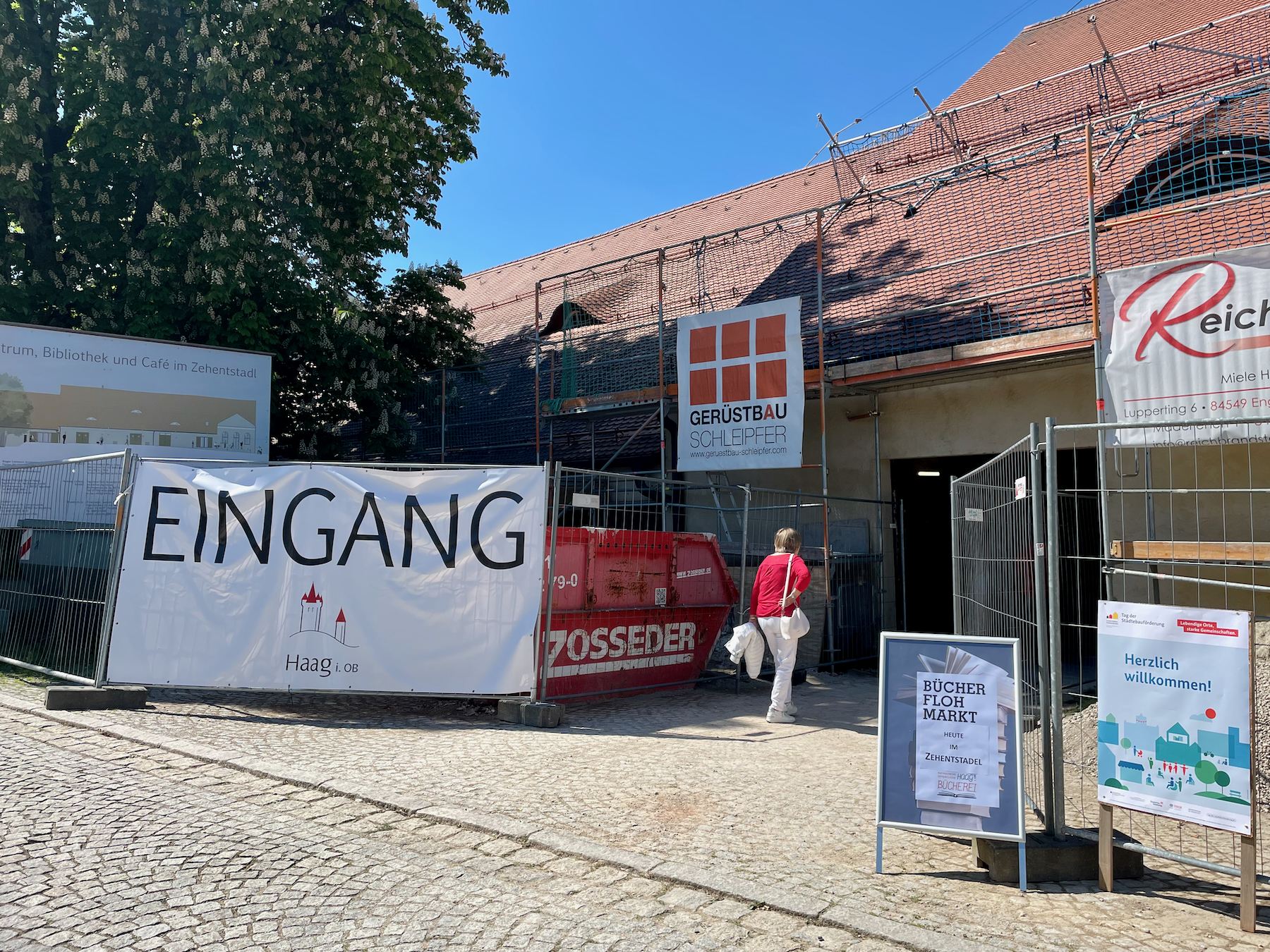 Die Marktgemeinde Haag i. OB. beteiligte sich an diesem Aktionstag und ermöglichte es allen Bürgern, sich über die künftige Gestaltung des Zehentstadels vor Ort ein Bild zu machen.Andreas Grundner, Bauamtsleiter des Marktes Haag erläuterte zusammen mit unserer Projektleiterin Anna Kragler die Planung und den Ausführungsstand im Rahmen von Baustellenführungen.